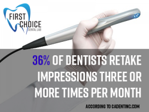 Thirty-six percent of dentists retake impressions three or more times per month, while another 36 percent must reappoint patients for impression-taking at least once per month.
